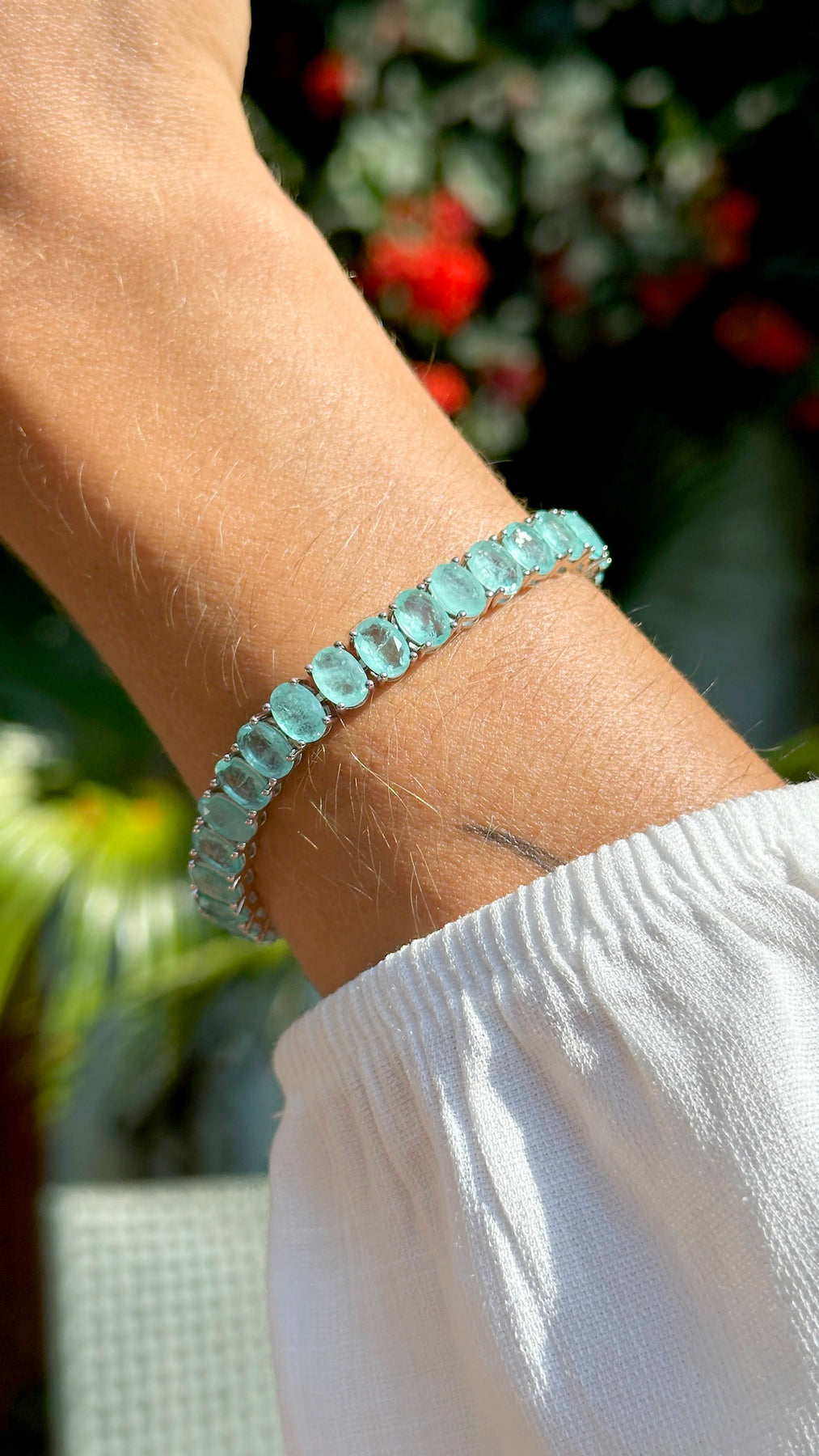 Bright Oval Light Tourmaline Fusion Tennis Bracelet 17cm, a delicate line of light tourmaline-toned oval stones that wraps the wrist in a soft, luminous glow. Feminine, refined and subtly eye-catching.