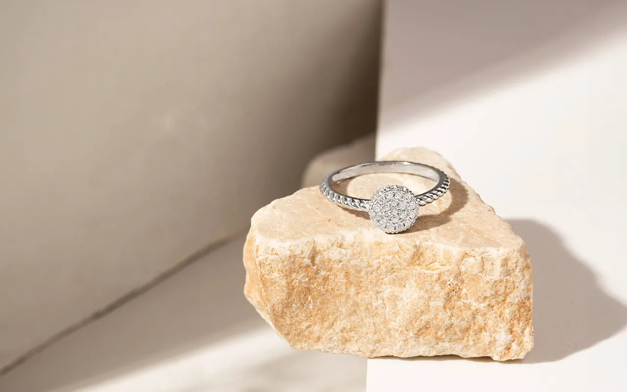 For a touch of elegance, wear the round sparkly white zirconia ring in 925 Sterling Silver as the centerpiece of your look. Pair it with neutral or soft-toned clothing to highlight the zirconia's shine, creating a sophisticated and refined look.
