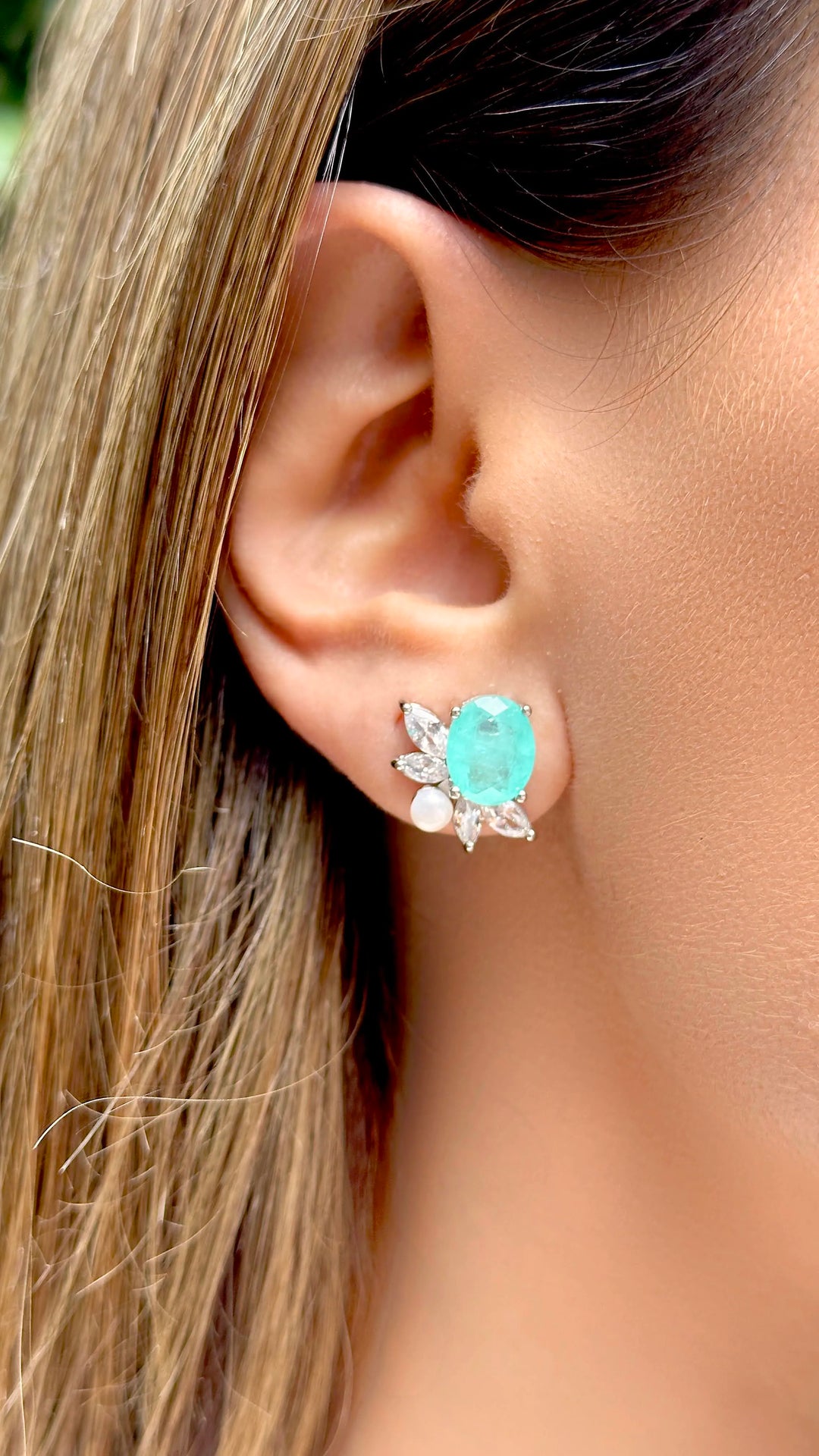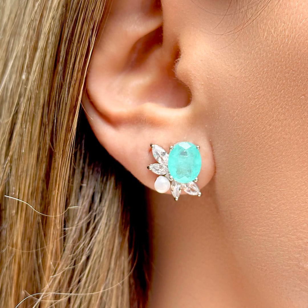- Stones: Paraiba Tourmaline Fusion, White Zirconia & Synthetic pearl.