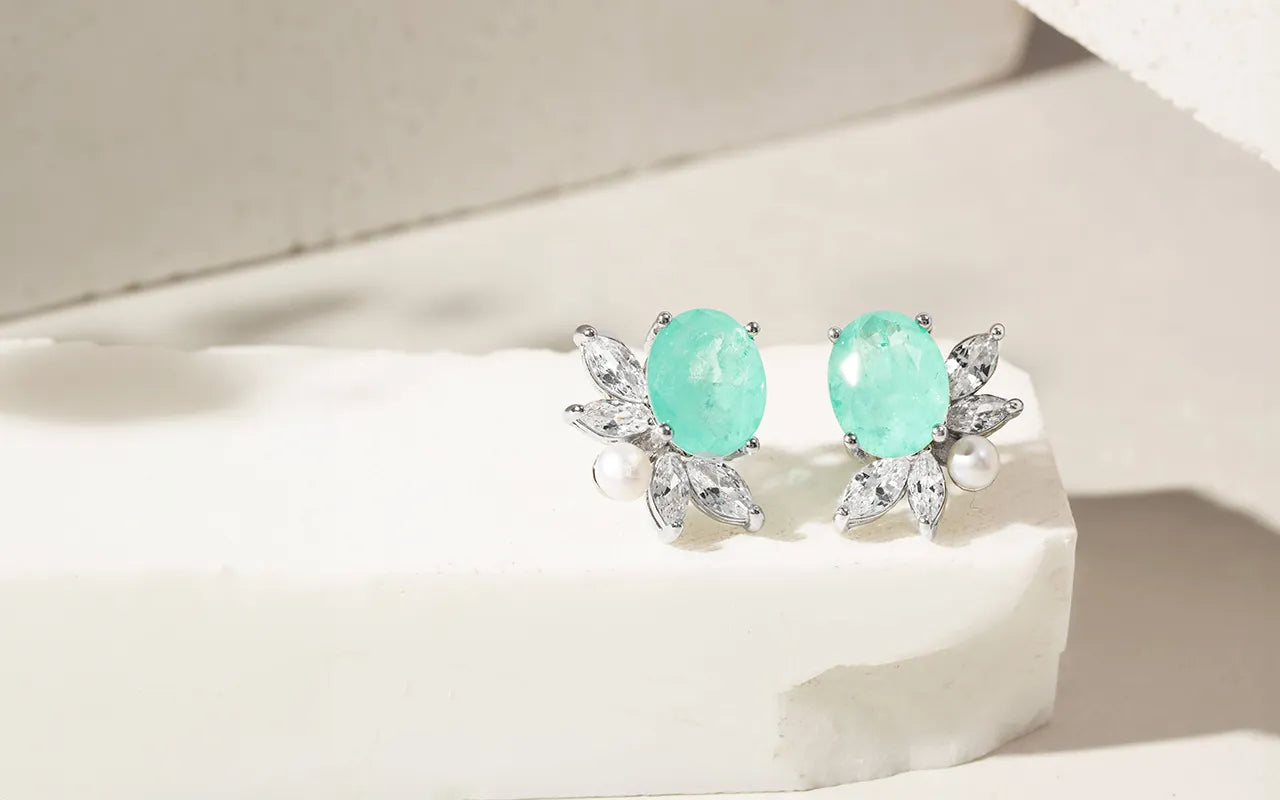 Get ready to shine with our stunning Bright Oval Paraiba Tourmaline Fusion & Pearl Earrings! Made with high-quality 925 sterling silver, these earrings feature vibrant Paraiba tourmaline stones that will catch every eye. Elevate any outfit with these elegant and unique earrings that are a must-have for any jewellery collection.