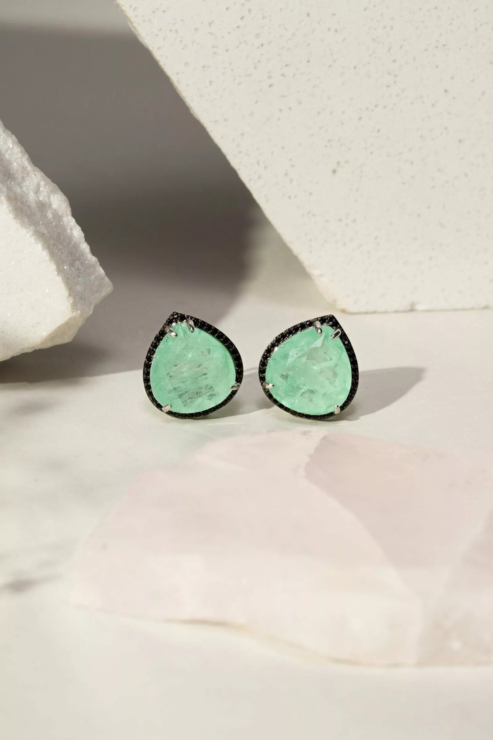 Discover the breathtaking fusion of Colombian emerald and black zirconia in these stunning earrings. Experience the elegance and refinement of pear-shaped stones set in a bold, modern design. Perfect for adding a touch of luxury and sophistication to any outfit. Elevate your style with these handcrafted beauties.