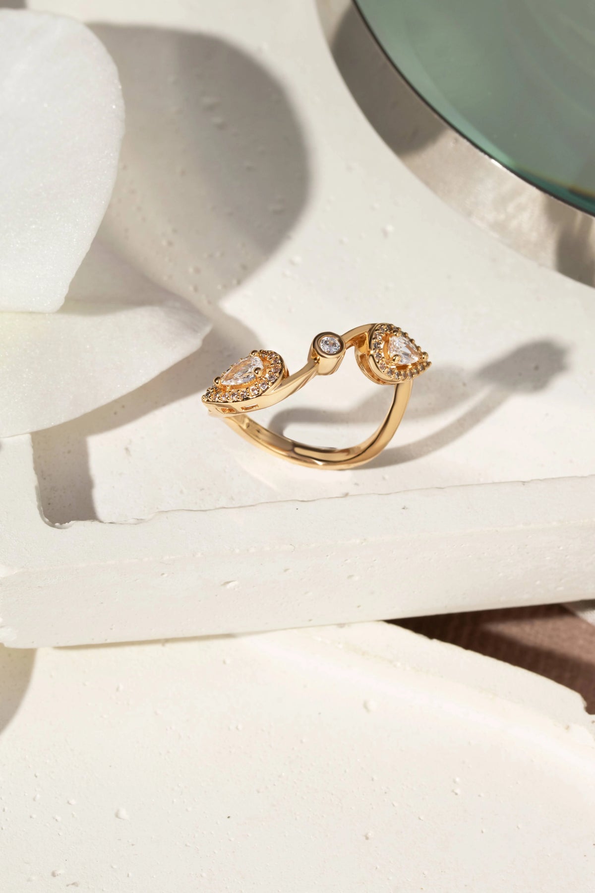 Bright Teardrop Twisted White Cubic Zirconia Ring, 18k Gold Plated