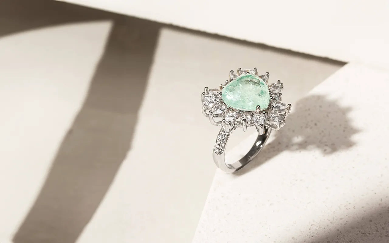 Impossible to go unnoticed with this Colombian Emerald Fusion Sparkling Heart Ring, crafted and rhodium-plated for a stunning finish. Inspired by the beauty of natural Colombian emeralds, this exquisite piece radiates vibrant energy, adding a touch of sophistication to any look with its timeless and captivating design.