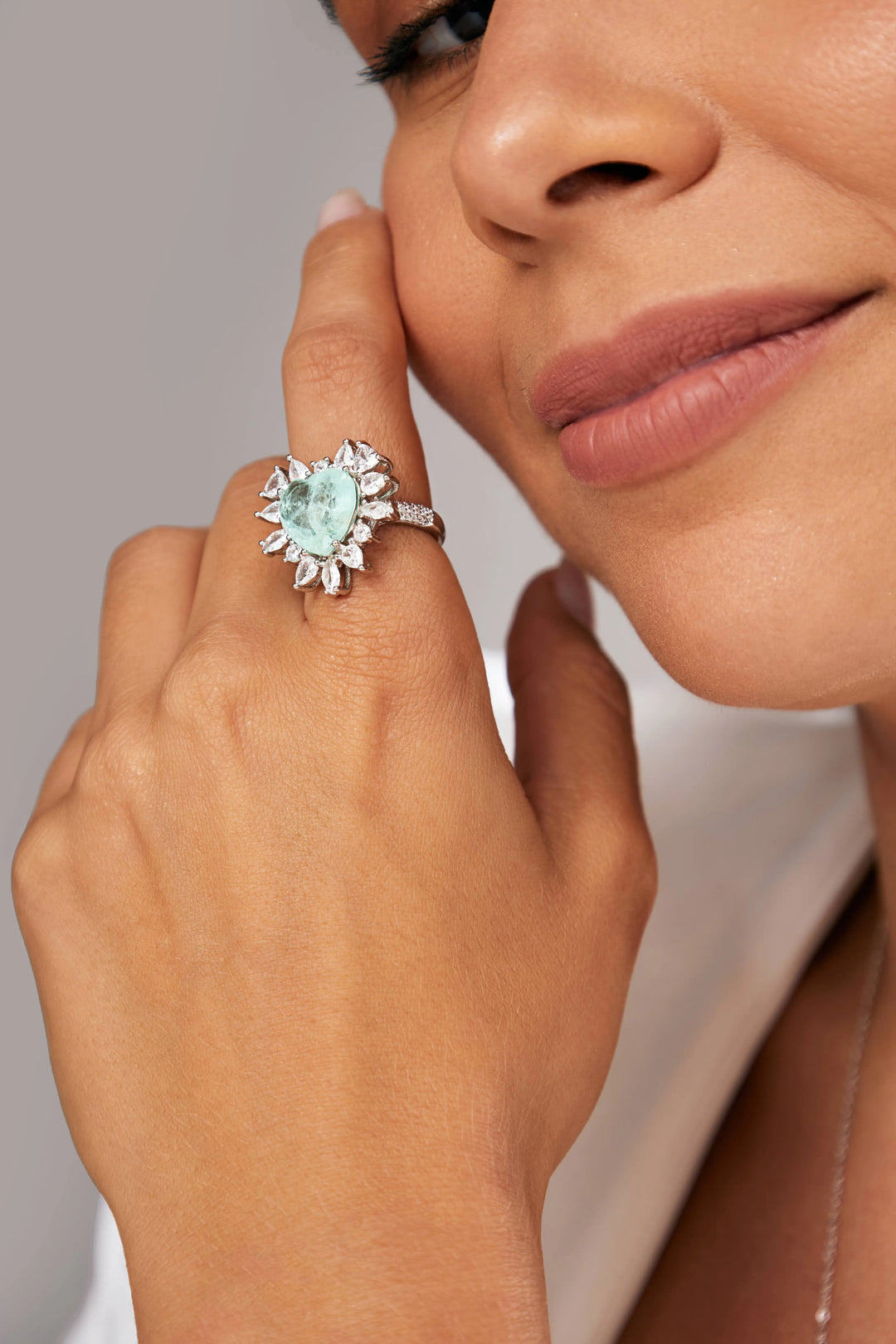 Wear the Colombian emerald fusion ring with a sparkling heart, rhodium-plated, to add a touch of sparkle and sophistication to your look during the year-end festivities, making each celebration even more special and unforgettable.