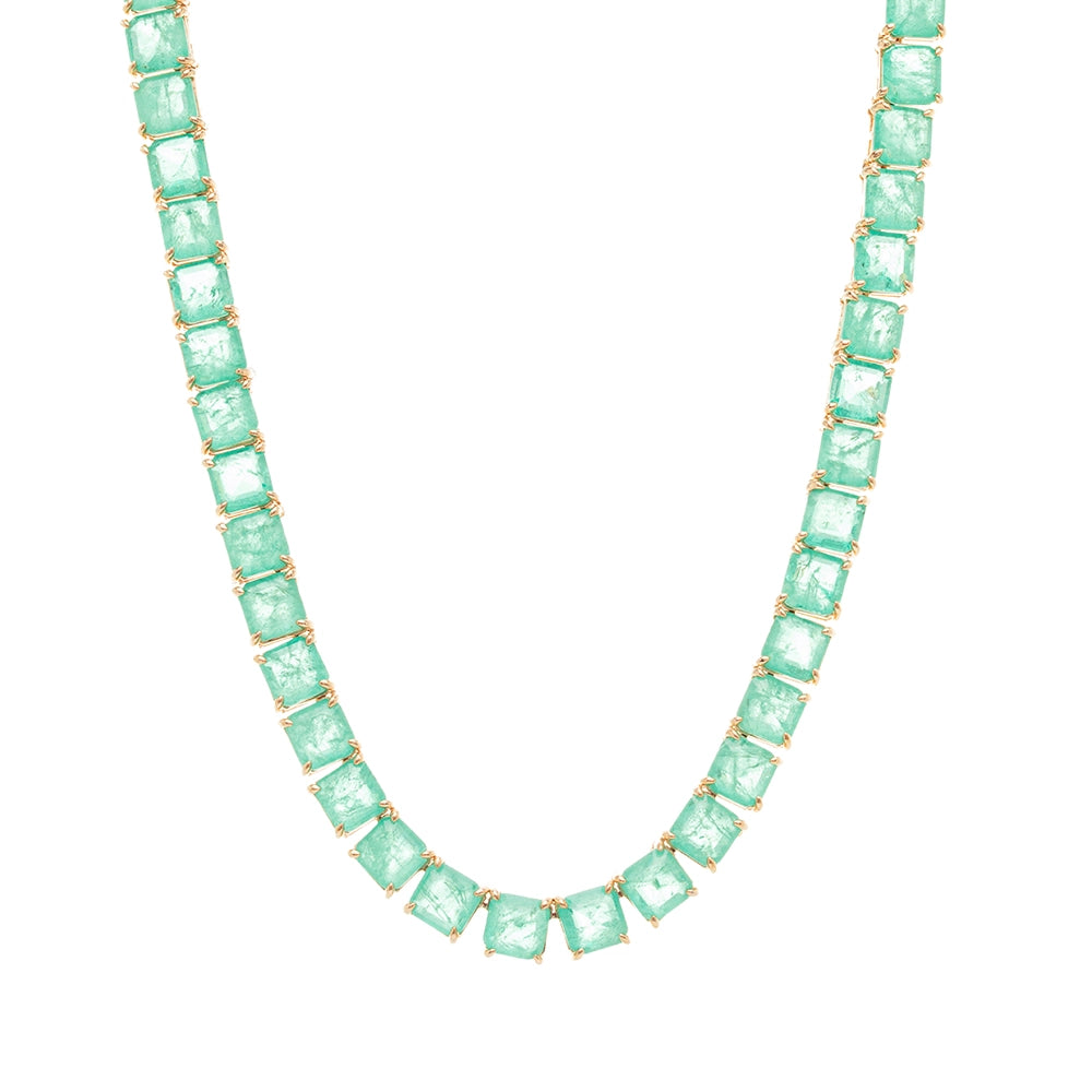 Bright Square Tourmaline Fusion Tennis Necklace 42cm, a continuous row of square tourmaline-toned stones that frames the neckline with vibrant, contemporary sparkle. Sophisticated, feminine and beautifully eye-catching.